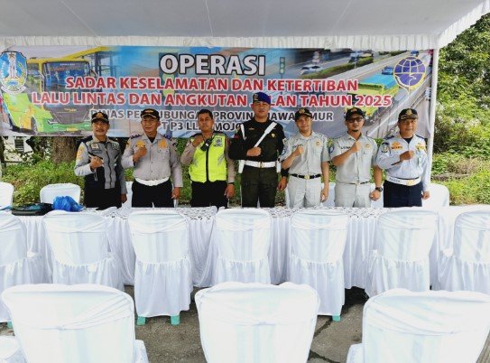 Rolasnews.com, Mojokerto – PT Jasa Raharja bersama dengan Dishub, Bapenda, Satpol PP dan Polisi Militer Kab Mojokerto, melaksanakan Operasi Sadar Keselamatan dan Ketertiban Lalu Lintas Angkutan Jalan yang berlokasi di Pos Timbangan Trowulan, Kabupaten Mojokerto.