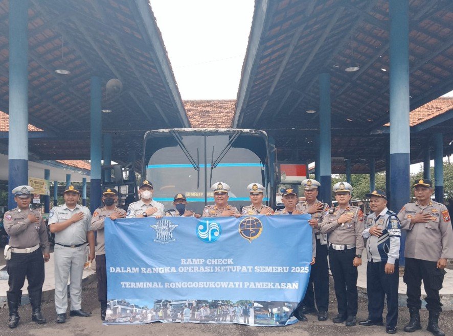 Rolasnews.com, Pamekasan – PT Jasa Raharja Cabang Pamekasan bersama dengan Dinas Perhubungan serta Satlantas Polres Pamekasan bersinergi melaksanakan Ramp Check kendaraan angkutan penumpang umum untuk memastikan keamanan dan keselamatan transportasi pada musim libur Lebaran Tahun 2025 di Terminal Ronggosukowati (24/3/2025). Kegiatan ini ditujukan khususnya pada kendaraan penumpang umum Bus AKDP & AKAP yang masuk di terminal. Kegiatan tersebut dihadiri langsung oleh Kasat Lantas Polres Pamekasan AKP. Bagus Wijanarko.